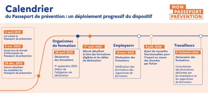 - 4e trimestre 2026 : Ouverture du Passeport de prévention aux travailleurs